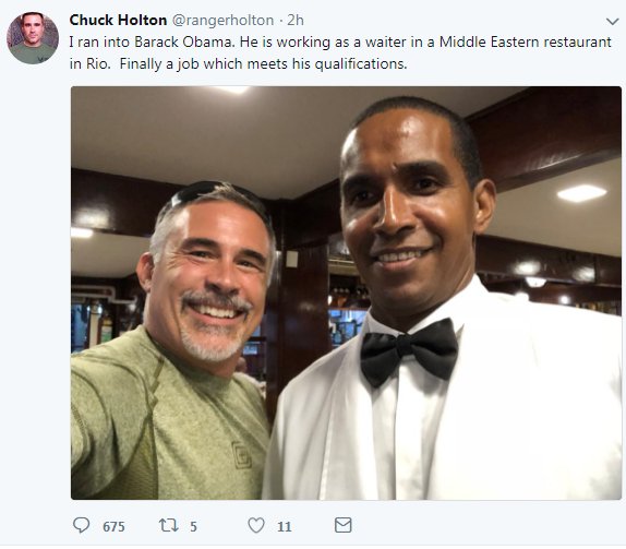 NRATV host Chuck Holton approached this waiter -- who kindly obliged him by taking a picture -- and then used the photo to demean the man's profession in a racist tweet http://mm4a.org/ZL5
