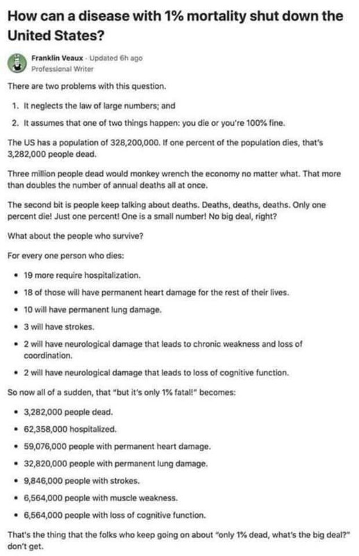 How can a disease with 1% mortality shut down the United States? Facts for the trump virus deniers (Original Post) Heartstrings Dec 2020 OP