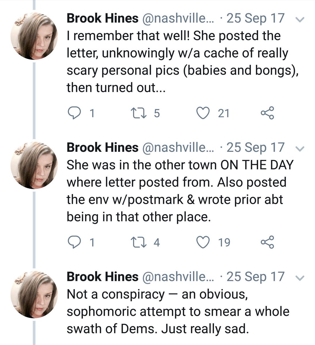 (97,638 posts)[div class="excerpt" ]That post is from 2015, yet her last post according to her profile was in2017, so she obviously