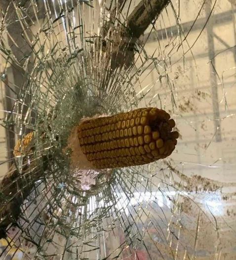 Tornadoes do crazy things. By the way, thats field corn, not sweet corn. Those kernels dont come off easily.