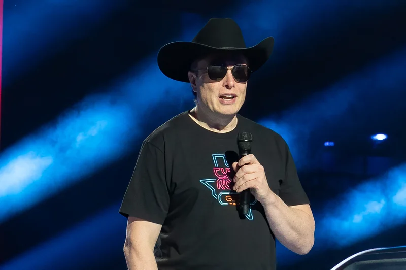 (77,795 posts)So heres Elons version of being "Texas" in black, big-winged hat, sunglasses (did Clint EASTWOOD, John WAYNE ever wear those in movies?), and a black T-shirt needing to be labeled with a Texas map. Usually its the Brits who wear black T-shirts (Simon COWELL, Ricky GERVAIS - I love GERVAIS btw).