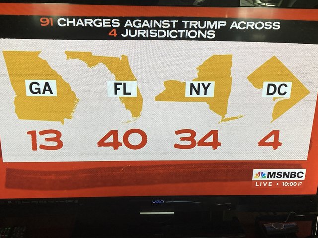 Slide of 91 criminal charges against tfg: 40 Florida, 34 New York, 13 Georgia, 4 Washington, DC (Original Post)