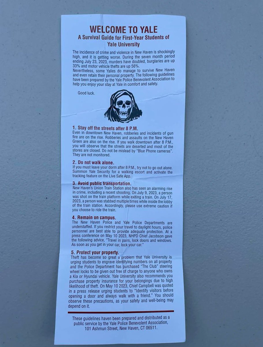 That being said, this wasn't distributed by Yale University. It was distributed by the Yale Police Benevolent Association, whose viewpoint on things might be a bit slanted.