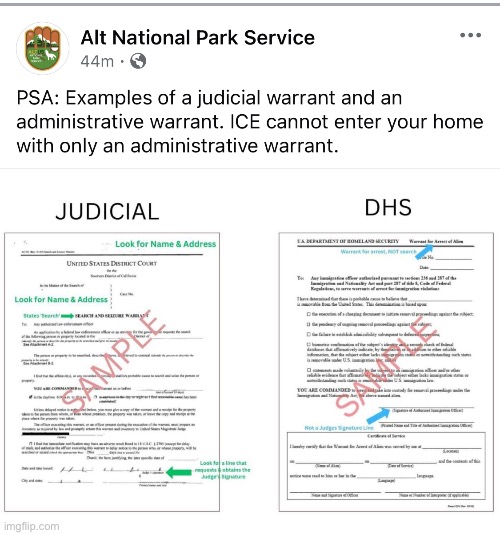 ICE needs a Judicial Warrant with YOUR Name and Warrant.
