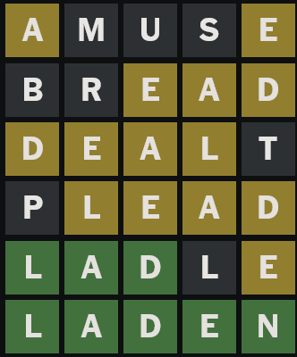 🟩🟩⬜🟩🟨laced