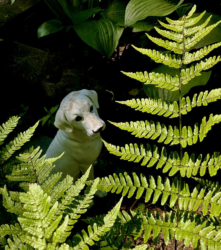 Your ferns and hostas look healthy. My ferns are beginning to turn brown from the top. Happens every year.
