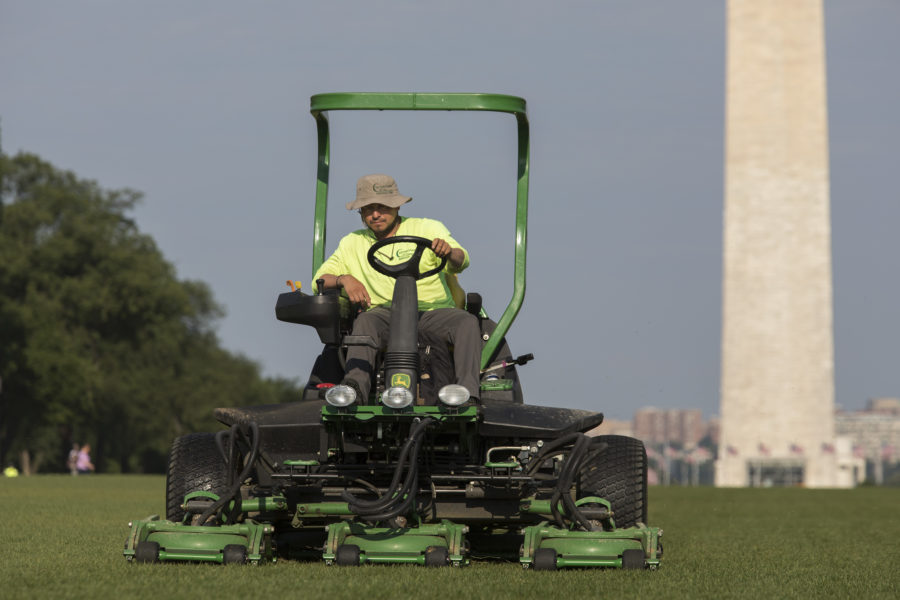 The grass on the National Mall stands up to the foot traffic of roughly 36 million people a year. Tourists, protestors and recreational sports leagues trample the emerald turf on a regular basis. Its the most visited national park in the U.S. But have you ever caught a glimpse of the people that cut the grass?
