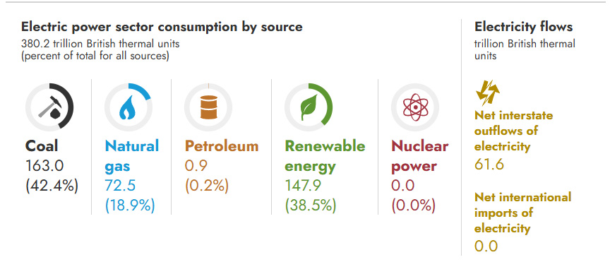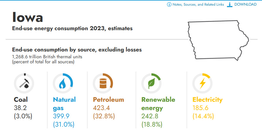 In percent talk, in 2024, according to that site, which is here, Iowa produced 62.84% of its energy from WIND!!!!!!!!.