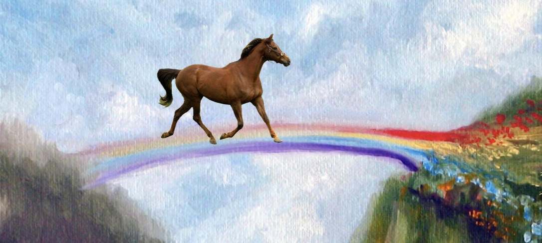 (10,618 posts)For 15 years my wife and I had a boarding barn for retired horses. After one of our favorites, Charlie Brown, died, I found a painting of The Rainbow Bridge online and placed him onto it. Sent it to his mom.