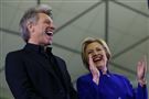 Democratic presidential candidate Hillary Clinton stands on stage with musician Jon Bon Jovi during a campaign stop at Rutgers University in Newark, N.J., in June.