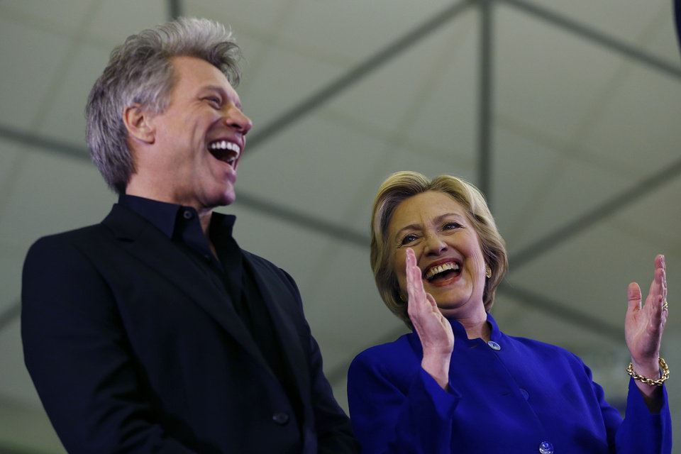 Bon Jovi, known for such hits as Livin on a Prayer and You Give Love a Bad Name, joined Hillary Clinton and Sen. Cory Booker at Rutgers University in the lead-up to the primary in his home state of New Jersey. At a New York City show during his Runaway Tours run, he joked that he would be "Secretary of Entertainment" in a Clinton White House.