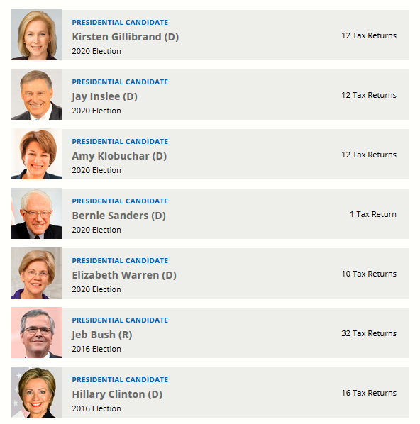 Even candidates that are NEW to presidential politics are releasing their tax returns pronto, one made a habit of releasing her's EVERY year of her political life. So far, only TWO people have not released a tax return for years, one of whom sane democrats want to defeat and remove from the Office of President.