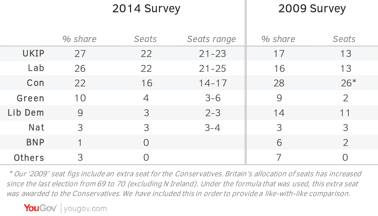 YouGov's projection from their final poll - Greens to overtake Lib Dems: muriel_volestrangler May 2014 #25